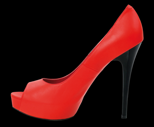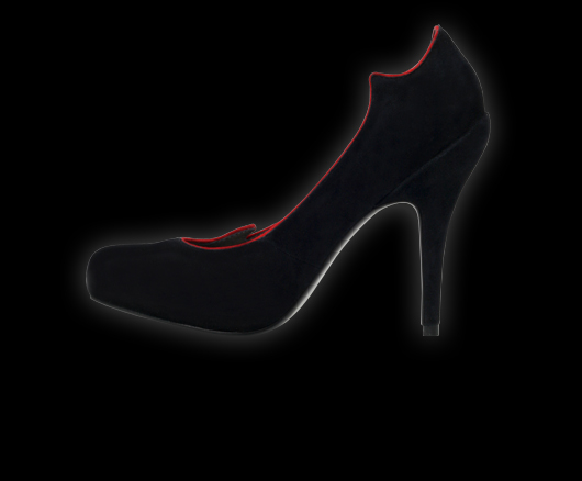 Je žádoucí a její konturu lemují špičky plamenů. Svrchní část z pravé velurové kůže - kozinky. Vnitřní část a stélka: pravá kůže. Podešev: pryž. Výška podpatku 12 cm. Vysoce módní obuv. Délka stélky je uvedena v milimetrech u každé velikosti za lomítkem.