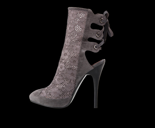 Je nejvyšší a elegantně obepíná Vaše lýtko. Její silueta vynikne díky zajimavému šněrování v zadní části. Svrchní část je kombinace pravé velurové kůže - kozinky a mesh textilie. Vnitřní část a stélka z pravé kůže. Podešev: černá pryž. Výška podpatku 12 cm, výška platformy 3 cm, oblouk 9 cm. Vysoce módní obuv. Délka stélky je uvedena v milimetrech u každé velikosti za lomítkem.